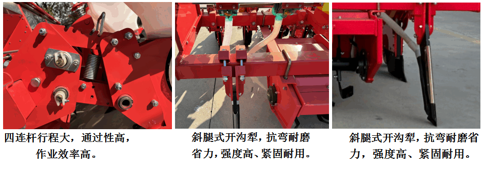 6、地輪采用單臂設(shè)計(jì),有效避免纏繞、擁堵,各行傳動(dòng)軸連成一體,統(tǒng)一驅(qū)動(dòng),傳動(dòng)動(dòng)力大,即使其中一側(cè)地輪偶然打滑也不影響正常播種:播種單體采用仿形設(shè)計(jì),可隨地面上下浮動(dòng)、可實(shí)現(xiàn)播深一致。